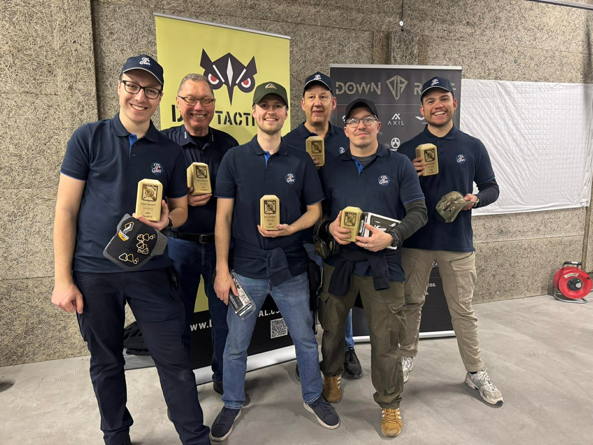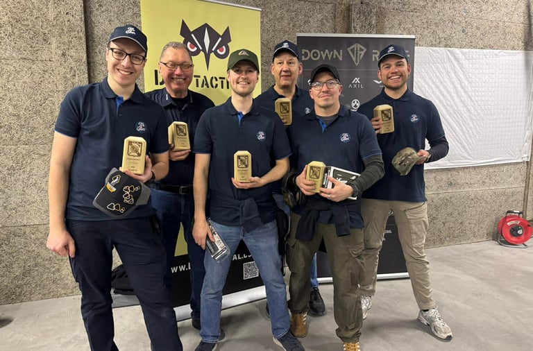 Organisée par le Schuttersclub SKW de Sint-Kathelijn-Waver, cette deuxième édition reprenait la formule éprouvée de la première : trois manches de qualifications, suivies des quarts, des demi-finales et de la grande finale. Mais la barre avait été rehaussée : seize équipes au lieu de douze, des cibles à la complexité toujours plus élaborée, et des adversaires dont l'arsenal imposant donnait le ton. Là où certains arboraient des .45 ACP et autres calibres conséquents ainsi que des shotguns modernes chargés d'accessoires, notre équipe se présentait avec exclusivement des 9mm ainsi que d’un vieux riotgun. Sur le papier, l'écart semblait conséquent.